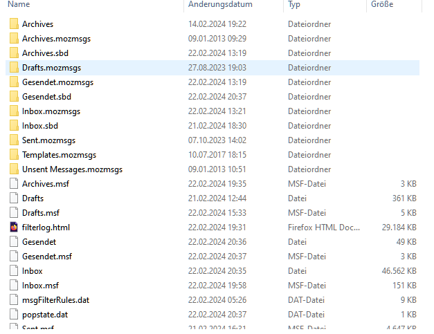 Nur so, auffällig für mich, es existiert eine mbox Datei Ablage mit offensichtlichem Inhalt und ein Ordner Ablage.sbd