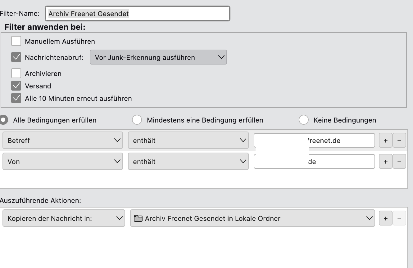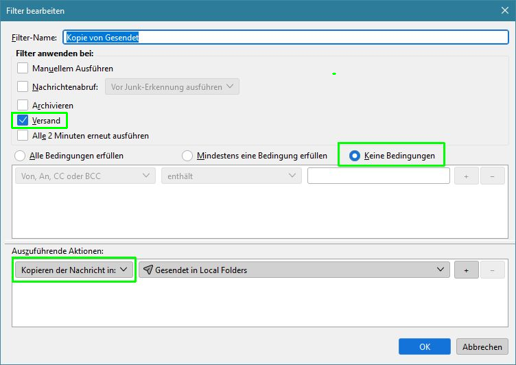 ich würde gerne einen Filter für ein IMAP-Konto erstellen, der mir jede gesendete Mail, die in 'Gesendet' auf meinem IMAP-Ordner landet AUCH in einen eigens erstellten lokalen Ordner kopiert.