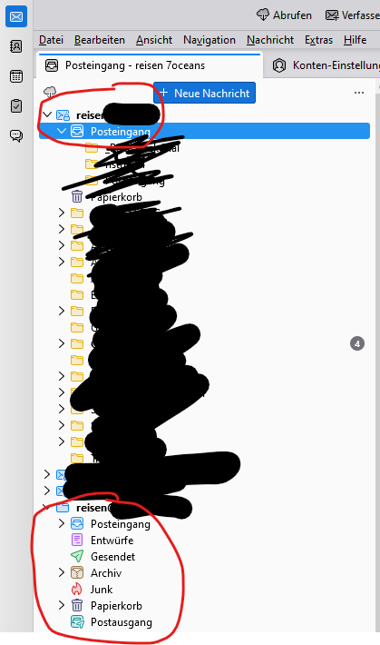 Nach neu Aufsetzten des PCs und neu installation von Thunderbird ist ein Email-Konto 2-Geteilt.
