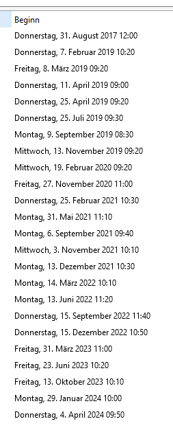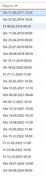 Ich habe nach einem Termin gesucht und in TB werden mir diese Daten dazu angezeigt: