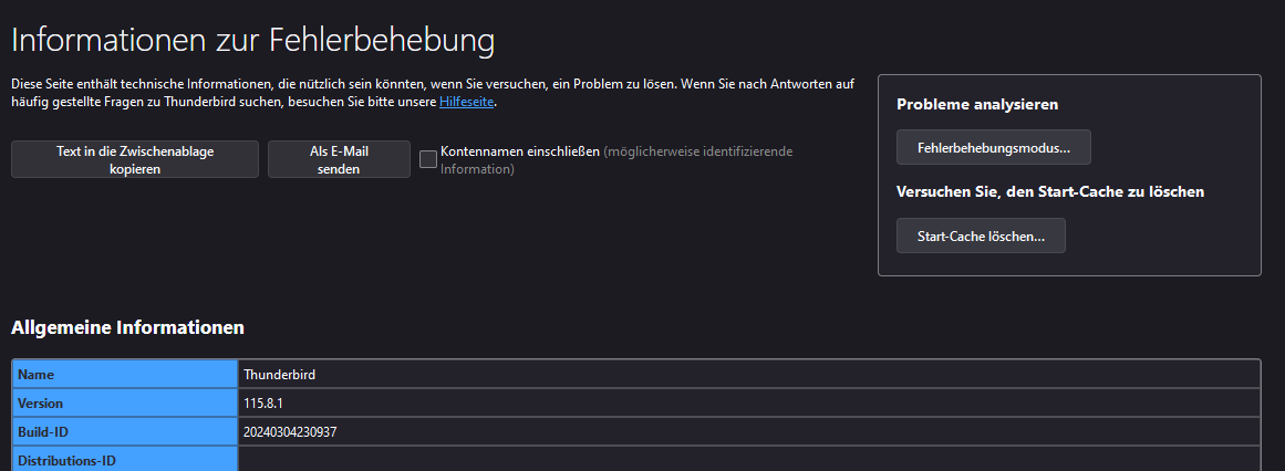 • Thunderbird 115.7.0 sendet keine Mails