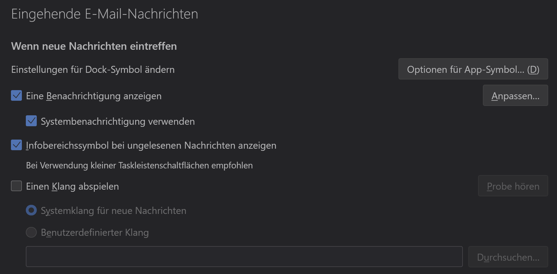 ich habe Benachrichtigungen für neue E-Mails aktiviert.