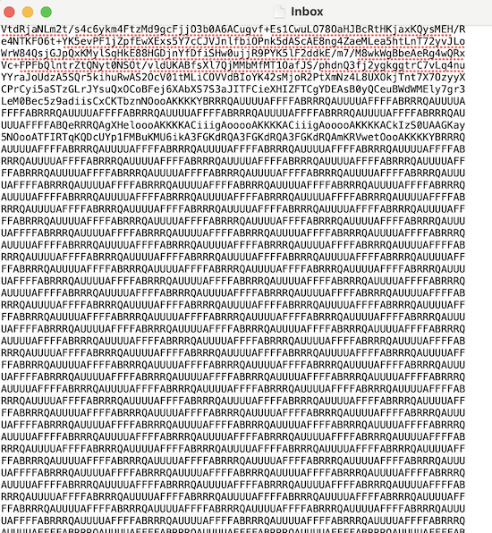 Solche Zeichen habe ich noch nie in einer Mbox-Datei gesehen, könnte es sich um eine Tabelle handeln? Die üblichen Anhänge, die den größten Teil der Inbox ausgemacht haben, kenne ich in der folgenden Darstellung (die weißen Rechtecke wurden von mir eingefügt).