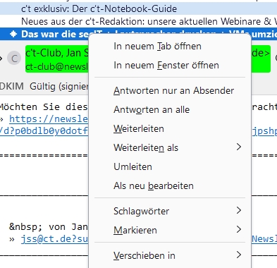 Seit kurzem kann ich bei neuen Emails im Posteingang mit der rechten Maustaste nicht mehr "im Themenbaum anzeigen" anklicken.