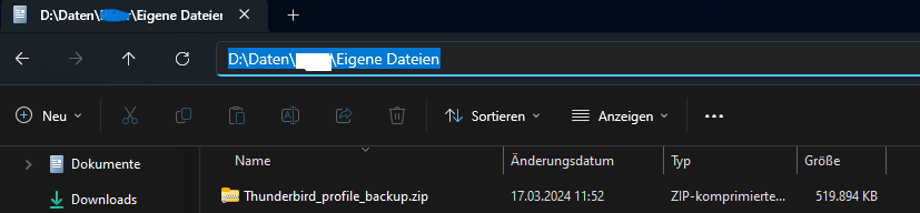 Als nächstes wollte ich die Profile-Datei unter C:\Users\******\AppData\Roaming\Thunderbird\Profiles auf einem USB-Stick sichern.
