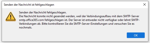 • Keine Mails Senden möglich SMTP-Server Fehlermeldung