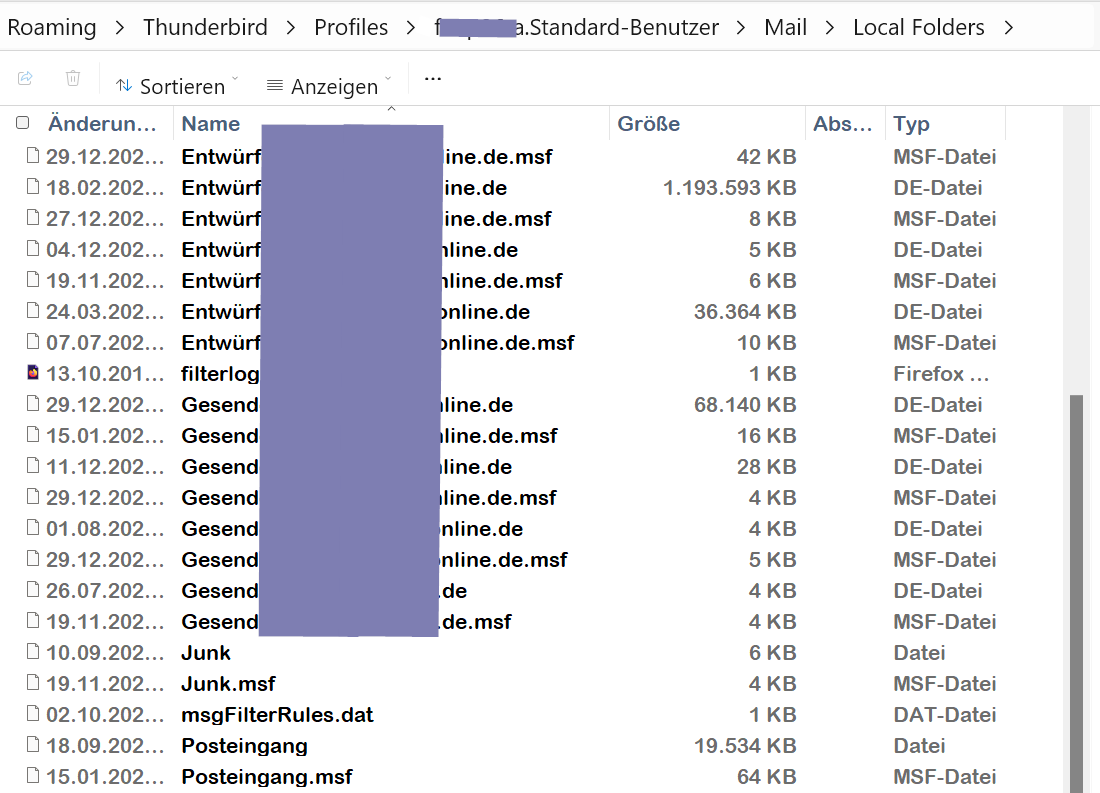 Im Lokal Folders 1 ist jetzt nur der Ordner mit leerem Papierkorb und Postausgang. Im Lokal Folders sind alle Dokus von der vorherigen Einrichtung mit diversen Unterordner wie Gesendet, Posteingang, Entwürfe usw. Wie kann ich diese Daten wieder in Thunderbird übertragen?