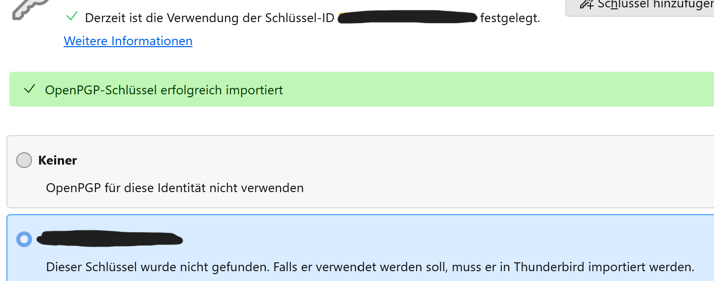 Weiß da jemand Rat? Ich habe versucht den Schlüssel manuell zu importieren, aber da führt zum gleichen Ergebnis.