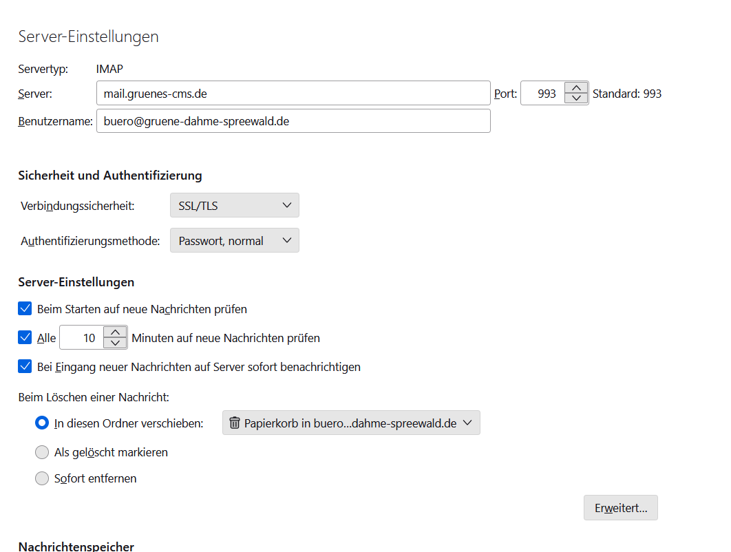 Postfach ist Verdigado, bzw. mail.gruenes-cms.de