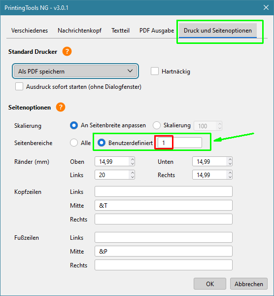 hier werden Sie geholfen… ;) | PrintingTools NG hat eine Einstellung, nur eine bestimmte Seite zu drucken.