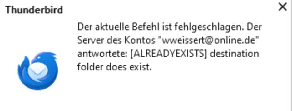Wenn ich versuche den Ordner "Name 1" in der Adresse imap://"Name2"%%40online.de@imap.1und1.de/"Name1"%%40online.de zu löschen, bekomme eine Fehlermeldung. Siehe Anlage