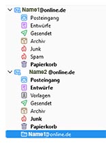 Alle Mails, die ich unter der Adresse "Name 1"@online.de bekomme, sind nur in diesem Ordner vorhanden. Der Ordner lässt sich nicht löschen oder umbenennen.