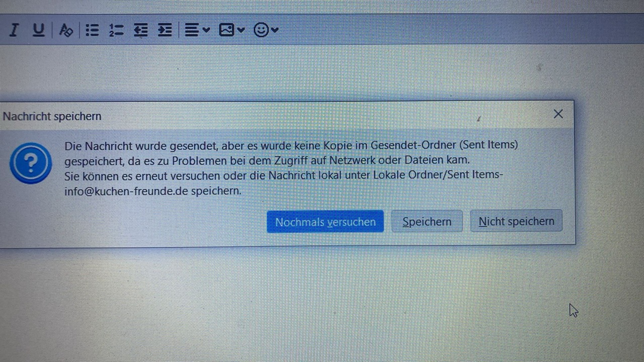 • Unvermögen, gesendete Mails im Ordner "Gesendet" abzulegen mit Fehlermeldung