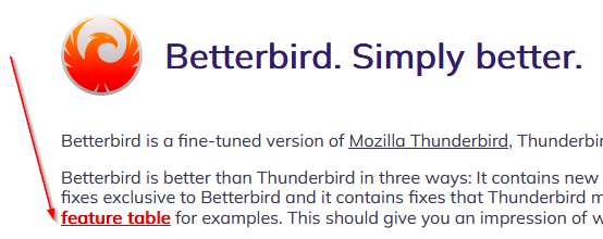 Wo genau findet man eine Auflistung der Unterschiede zwischen Thunderbird & Betterbird?