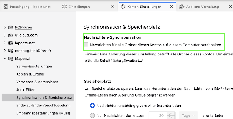 - Wie kann ich erreichen, dass Thunderbird zukünftig vom Web.de-Server nur neue Mails "on top" (zur Not unter Inkaufnahme von Doppelungen, ist mir wurscht) herunterlädt, ohne bereits früher heruntergeladene Mails zu löschen?