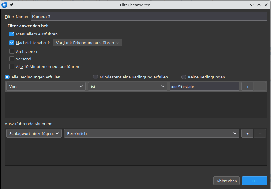 ich habe eine email mit abc@test.de und eine Umleitung von xxx@test.de.