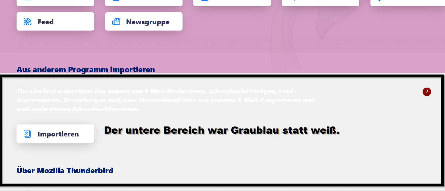 Genau. Das merkwürdige an Neddy's Screenshot ist, das die Überschrift "Aus anderem Programm importieren" noch eingefärbt ist, obwohl sie definitiv zu der Sektion darunter gehört, wie in Mapenzi's Screenshot erkennbar.