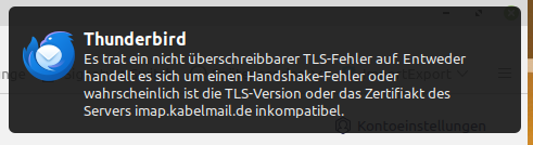 Es erscheint nachdem starten von Thunderbird folgende Nachricht :