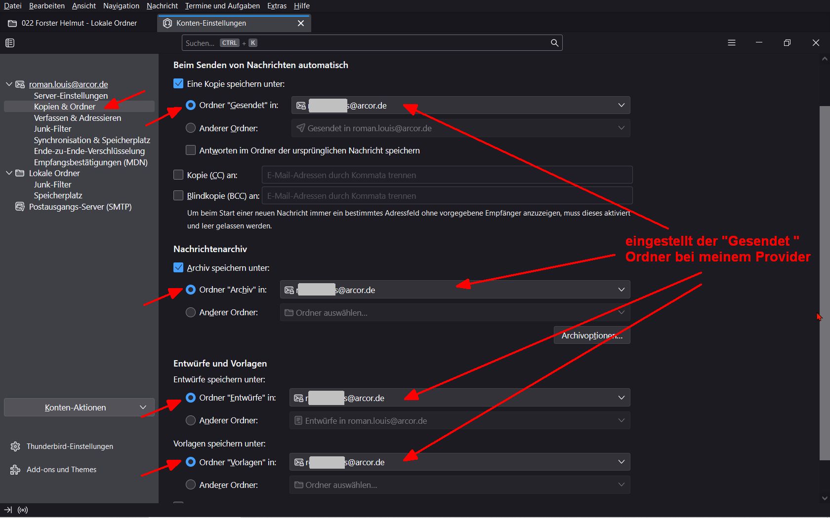 und nicht wie eigentlich weiter oben eingestellt unter dem Gesendet Ordner vom Provider.