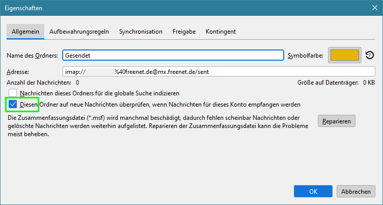 die Synchronisation von IMAP Ordnern lässt sich nicht abschalten