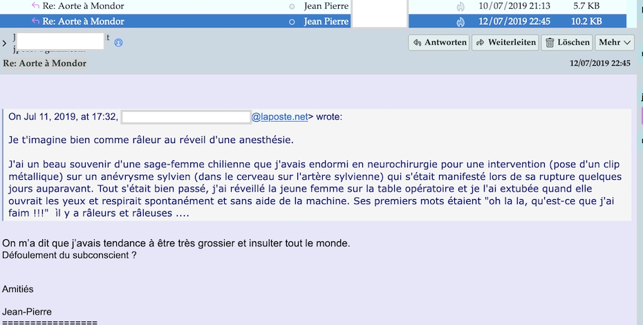 1) Empfangenes Antwortschreiben. Mein Originaltext (Zitat) hat natürlich eine andere Hintergrundfarbe, die Hintergrundfarbe des jeweiligen Zitat-Niveaus ist in meiner userContent.css Datei festgelegt