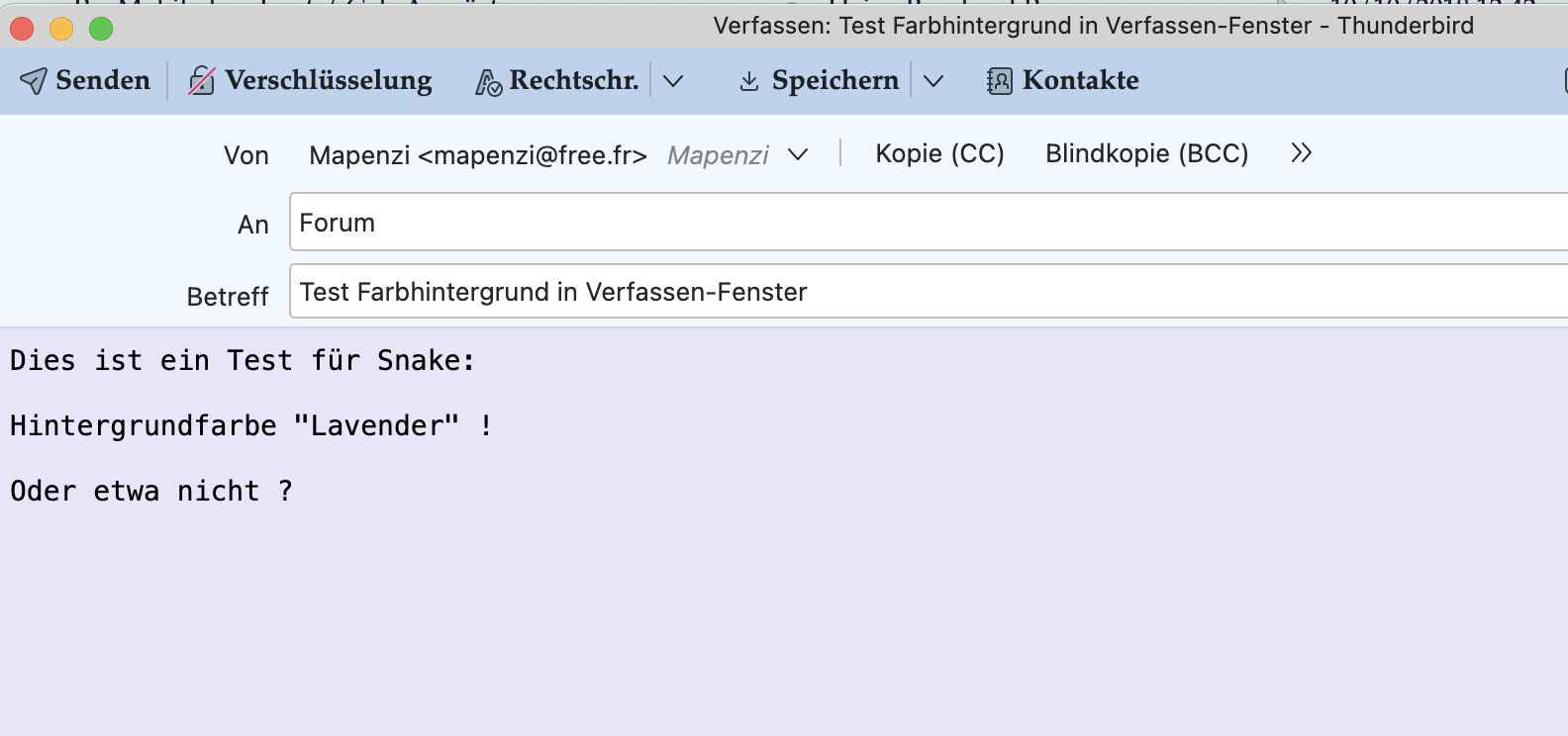 @Bastler Dein Code Funktioniert leider wird die Hintergrundfarbe nicht komplett ausgefüllt im Posteingang siehe den Screenshot zum teil bleibt in einigen stellen noch weiß, wie ändere ich die Hintergrundfarbe im Gesendet Ordner, die beim Antworten, Weiterleiten, Vorlagen?.