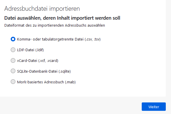 Jetzt das Adressbuch markieren, aus dem die Adressen geholt werden sollen, rechts entspr. auch in Mehrfachauswahl