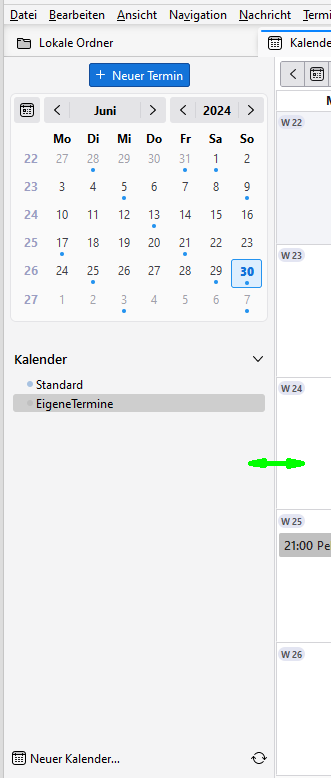 Wenn ich links den Tagesplan aktiviere ist selbst der Samstag überdeckt. Die Spaltenbreite läßt sich nicht anpassen. Einen Scrollbar finde ich auch nicht.