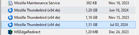 Wenn ich danach beide "Versionen" schließe und Thunderbird wieder starte, werden mir sofort alle Emailkonten korrekt angezeigt.