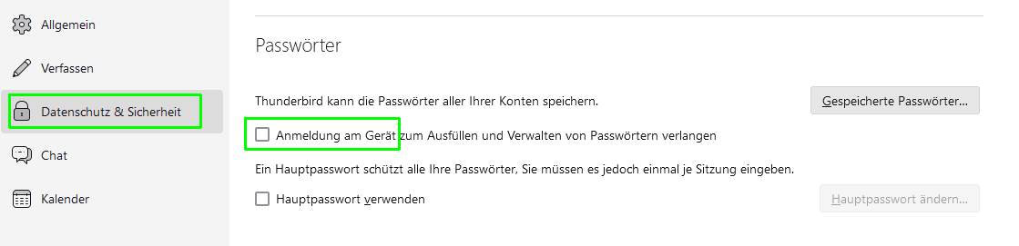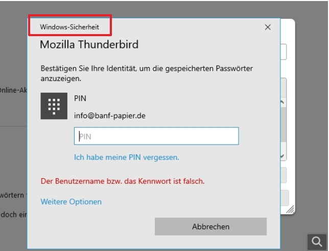 neu installiertes Thunderbird verlangt Pin