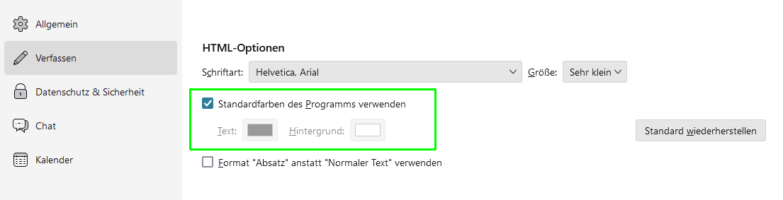 Windows kennt Dark Mode, Thunderbird an sich auch.