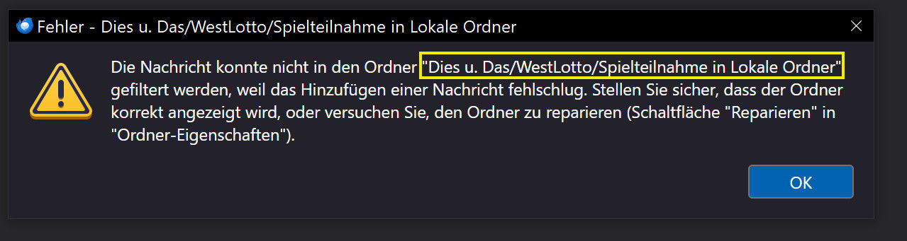 (Den entsprechenden Ordner habe ich "repariert")