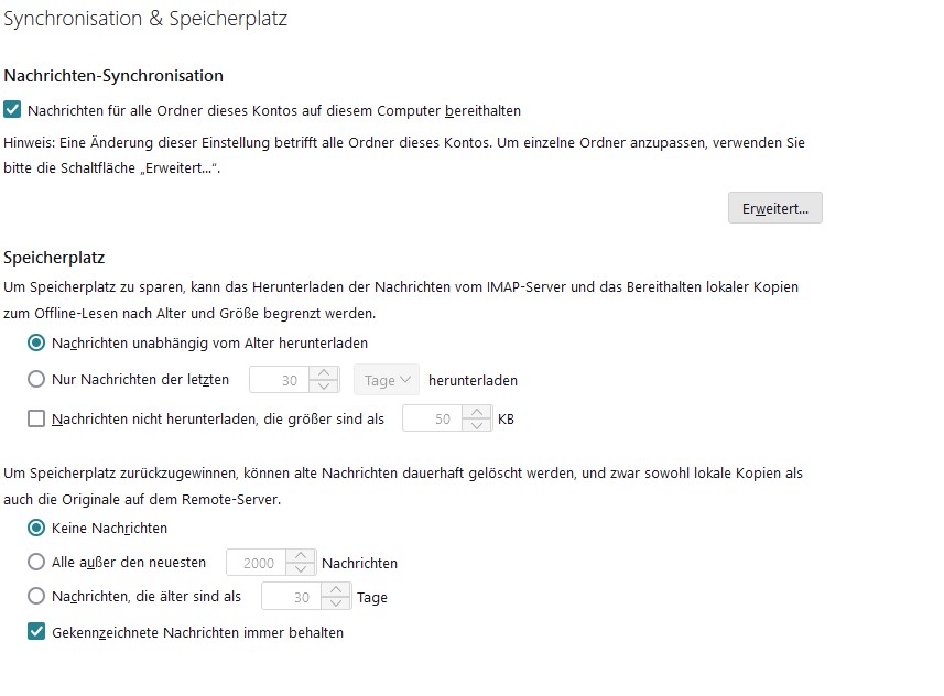 Ich habe schon die Konten-Einstellungen durchforstet, da ist aber nichts geändert wurden. Die Mails werden über IMAP abgerufen, weiterhin nutze ich auf dem Smartphone K9-Mail. Aber auch da wurden keine Einstellungen geändert.