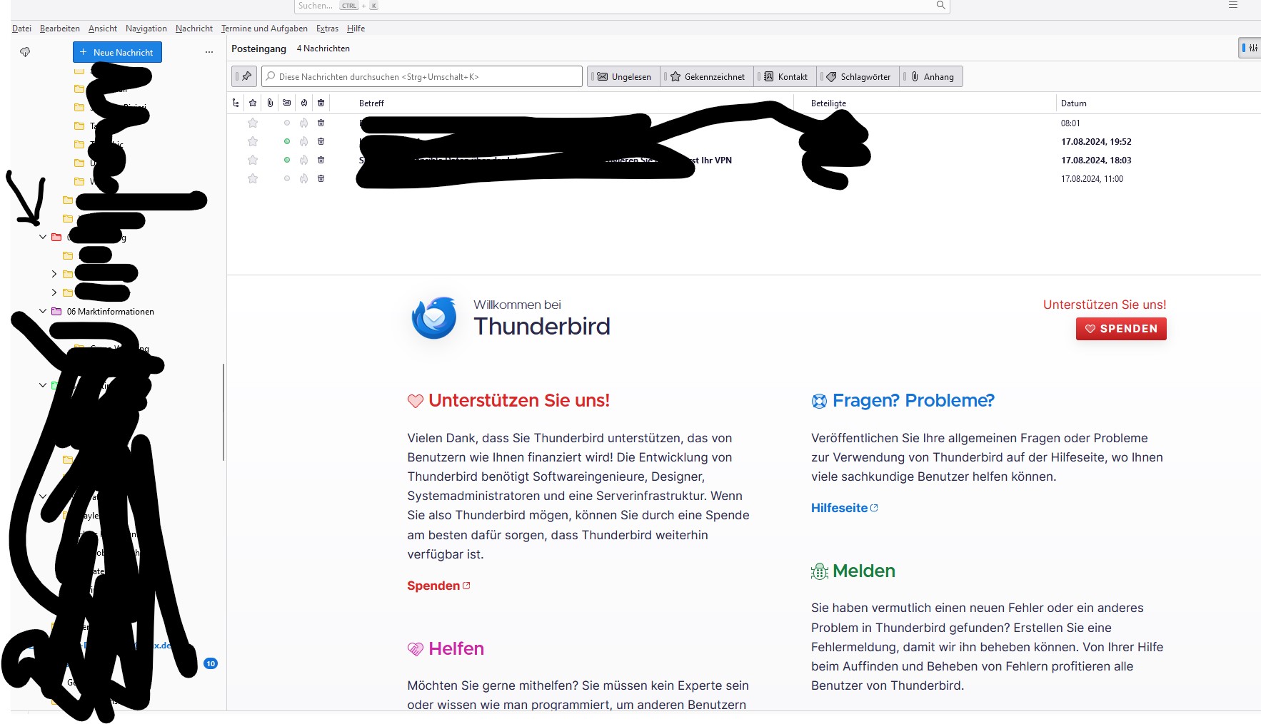 nachdem ich heute den ganzen Tag versucht habe, als Laie mein Problem selbst zu lösen, hab ich meine letzte Hoffnung auf Hilfe hier im Forum. Thunderbirdversion wäre 115.14.0 und Windows 11 Home. Kontenart ist IMAP. Postfachanbieter alfahosting. Als Virensoftware hab ich Bitdefender. Firewall kann ich euch leider nicht sagen. Router ist von O2 per Handyfunknetz. Ich hoffe, die Daten sind soweit ausreichend: