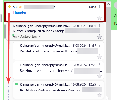 Beispiel: meist ist der Pfeil zugeklappt und es sind neue Nachrichten nicht auf Anhieb zu finden. Wenn der oberste / erste Nachricht sich farblich abheben würde, wäre eine neue Nachricht im Thread sofort zu erkennen.