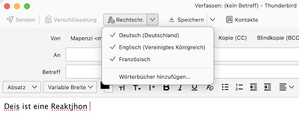 Aktiviert ist: "Rechtschreibprüfung während der Eingabe"