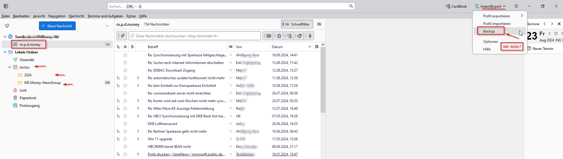 Wäre bei "Backup" auch der Strang Lokale Ordner\Archiv\2024 und/oder weitere Unterordner von "Archiv" mit abgedeckt? Also im Backup enthalten?