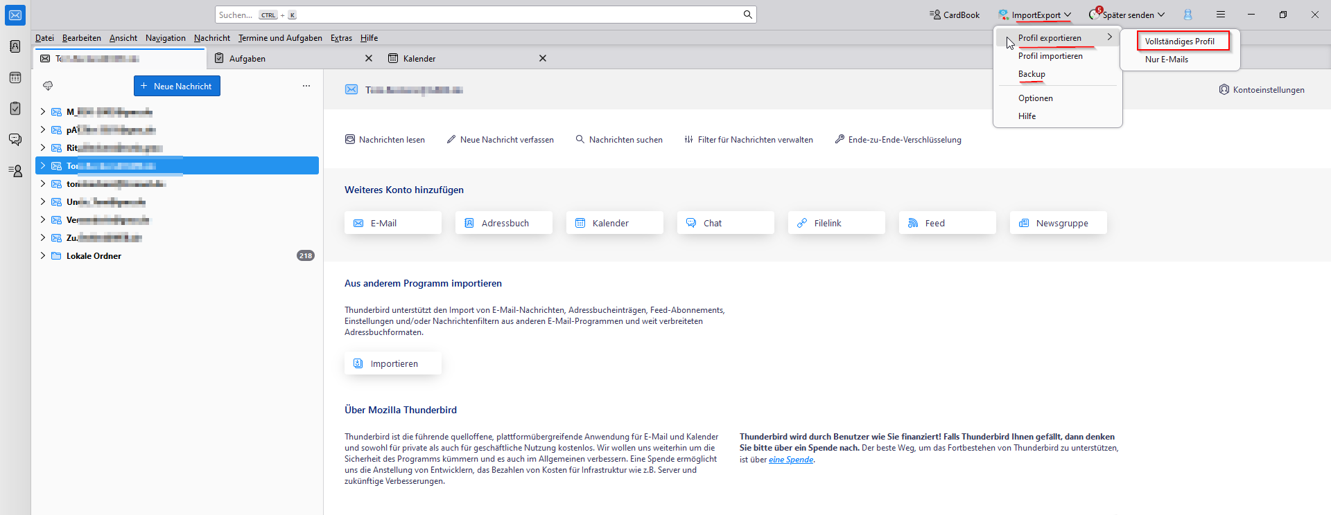 Also die IETNG aufrufen -> Profil exportieren UND Import/Export Tools -> Backup?