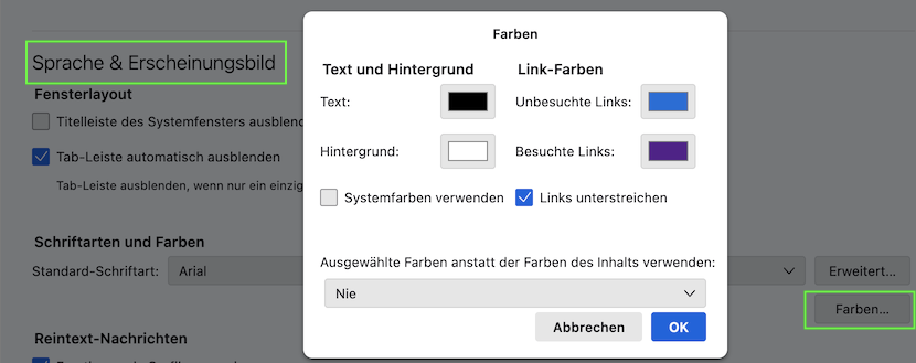 ich habe folgendes Problem wenn ich in Thunderbird ein Link anklicke wird der dannach Dunkel Blau.