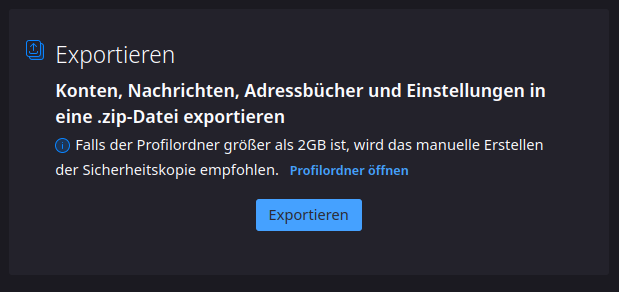 Jetzt das Problem. Ich musste wegen einer leider erfolgreichen Hacking-Attacke mein Konto von netcup löschen und neu einrichten. Vorher habe ich Thunderbird genutzt, was ich jetzt auch wieder machen möchte. Ich habe eine Zip-Datei über Thunderbird mit allen E-Mails, Kontakten usw. angelegt. So weit, so gut.