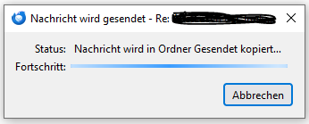 Im TB-Ordner Gesendet ist die E-Mail noch immer nicht angekommen. Ich werde Jetzt erst einmal den Versuch in den Gesendet Ordner zu kopieren abbrechen.