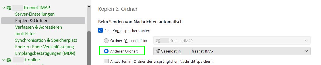 • Gesendete Emails werden nicht mehr im "Gesendet" Ordner abgelegt