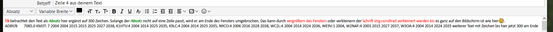 Hier nur ein Bild beim Verfassen des Textes. Der Betrachter (Posteingang) muß das gleiche machen, um keine Umbrüche zu haben.
