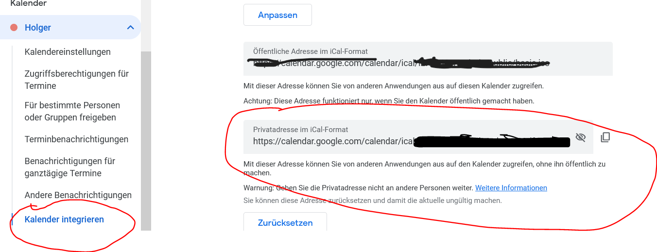 Google Kalender Einrichtung möglich, jedoch mit Schreibschutz bei Termineingabe ...