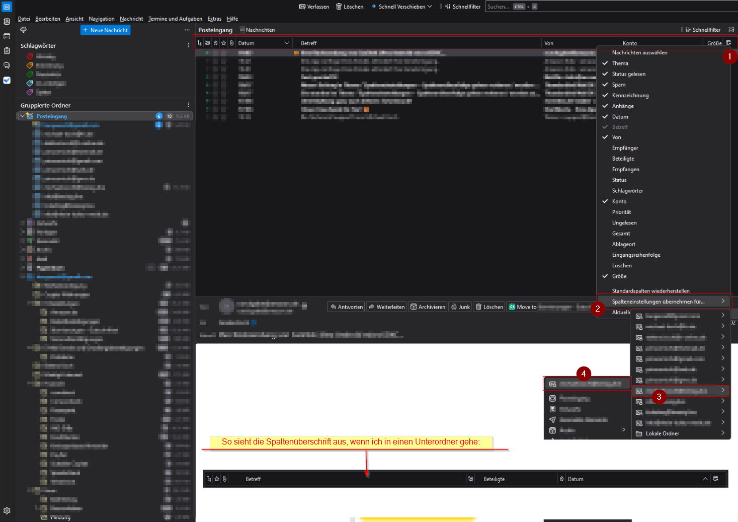 Spalteneinstellungen + Spaltenreihenfolge gehen verloren / werden zurückgesetzt - Ordner inhalte werden neu heruntergeladen (IMAP)