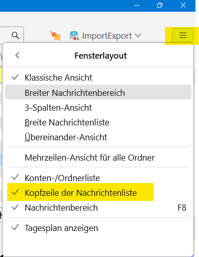 1. Kopfzeile der Nachrichtenliste aktivieren: