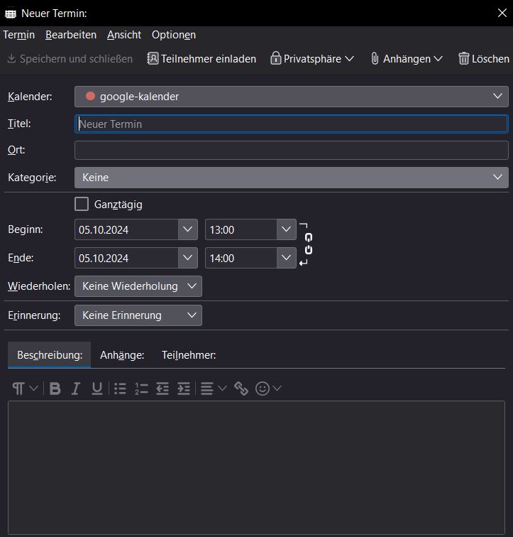Hat das Thema aus dem Forum Allgemeines Arbeiten / Konten einrichten / Installation & Update nach Kalender, Termin- und Aufgabenverwaltung (ehemals Lightning) verschoben.