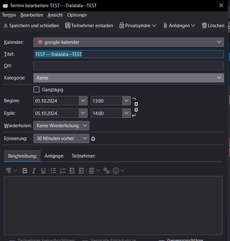 Ggf. den Google Kalender im TB löschen und frisch einbinden.