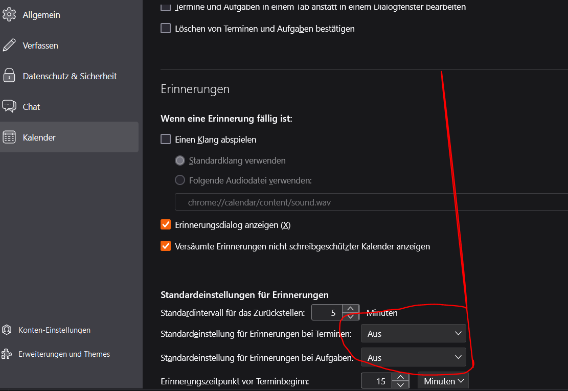 Erinnerungen ABWÄHLEN im TB-Kalender: Wie?