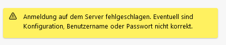 Wenn ich dann auf "Nochmals versuchen" klicke, bekomme ich die dritte Meldung "Anmeldung auf dem Server fehlgeschlagen".